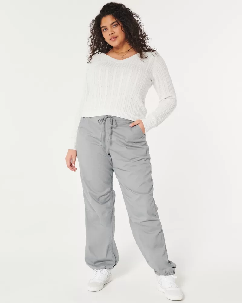 Cozy and super soft, this sweater features a cable-knit pattern, v-neckline and long sleeves. Embroidered left chest logo icon, ribbed trims. Slim Fit. Imported.