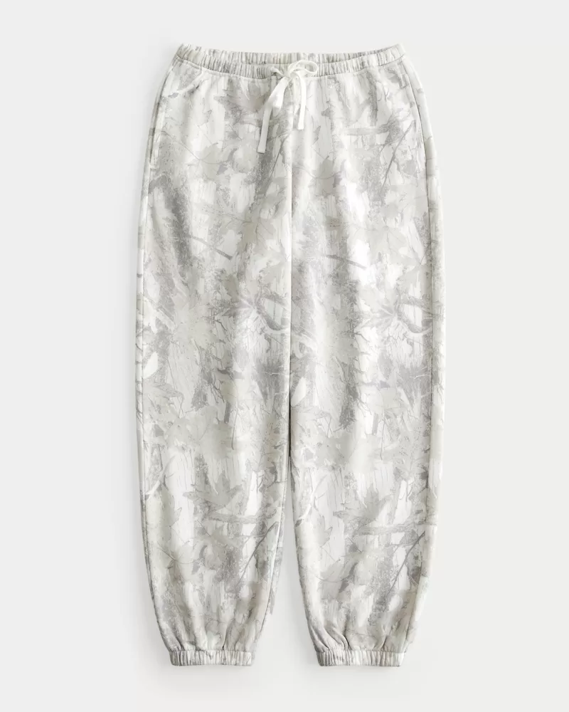 Super soft fleece joggers with a drawstring waist and all-over camo pattern. Banded hems, pockets. Imported.