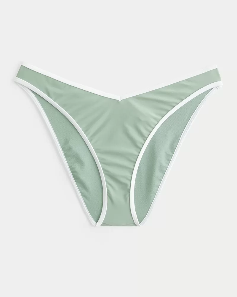 A cute bikini bottom in soft swim fabric, designed with a high-leg silhouette, v-waist and cheeky coverage. Contrast trim. Imported.