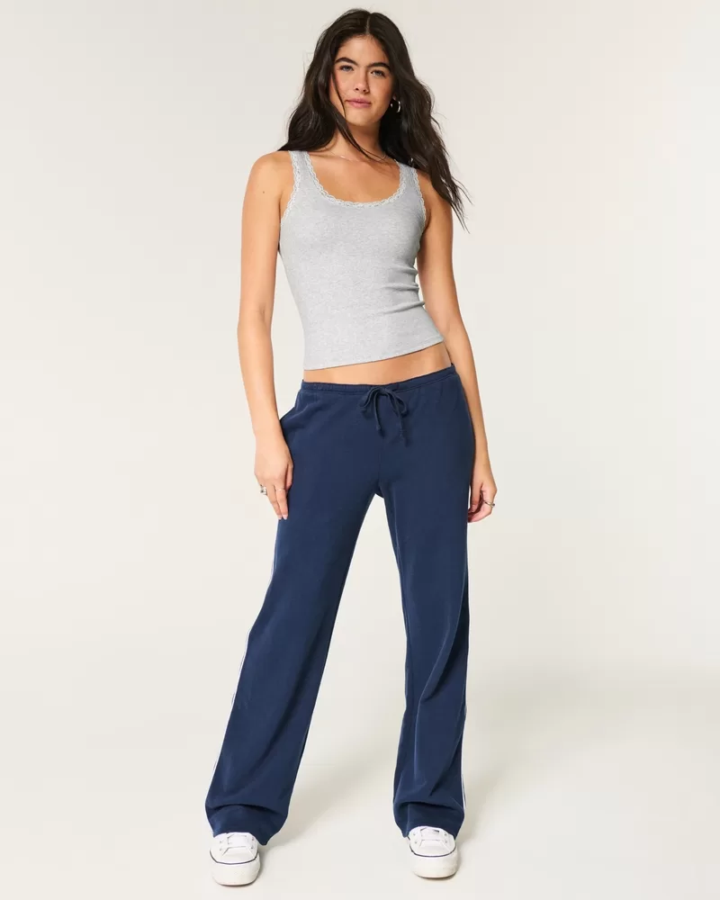 A cozy and super soft top in ribbed fabric with pretty lace trim. Scoop neckline. Slim Fit.