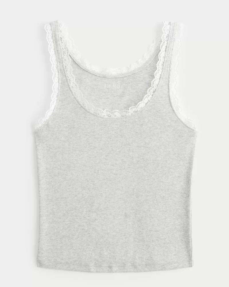 Cotton Blend Lace-Trim Scoop Cami