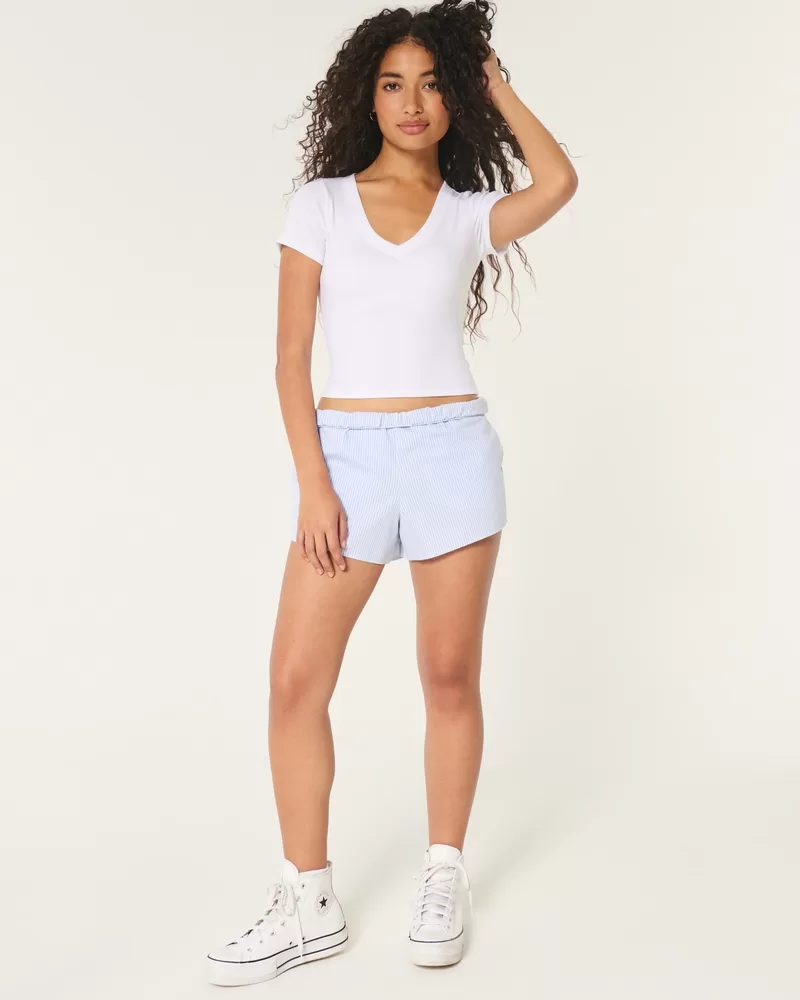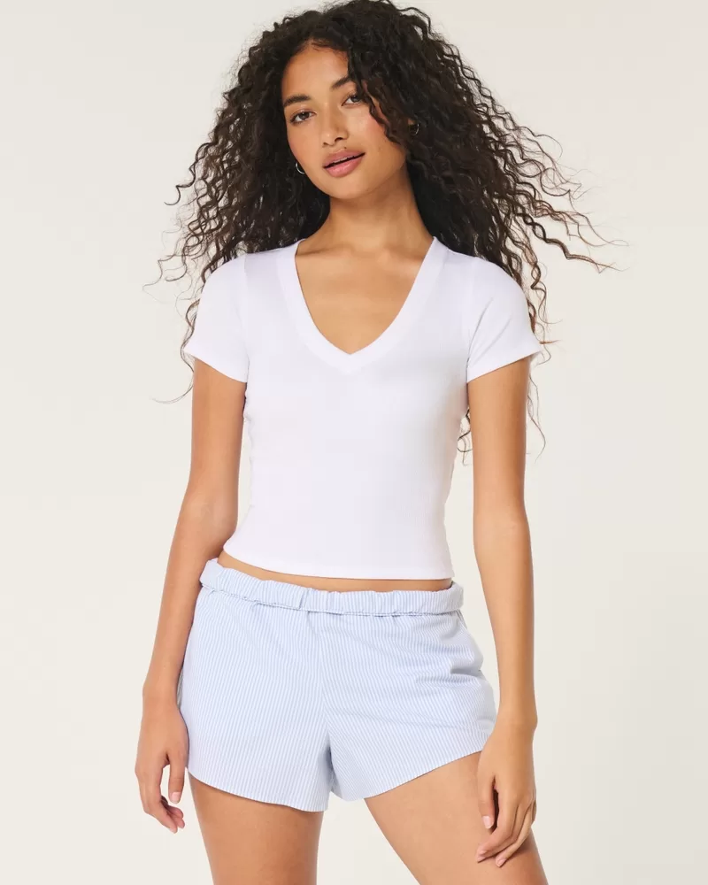 A super soft and ultra-comfy t-shirt with short sleeves and v-neckline. Ribbed fabric. Slim Fit.