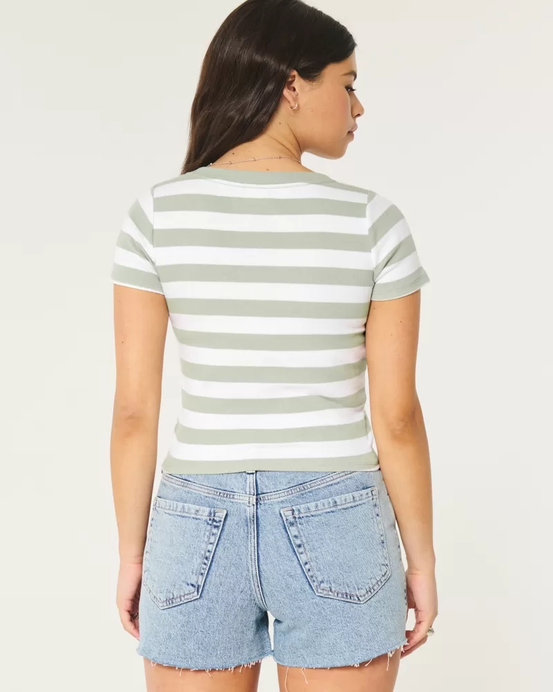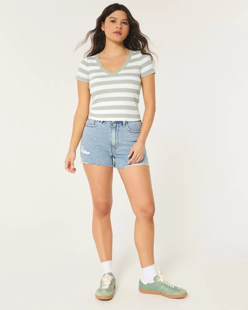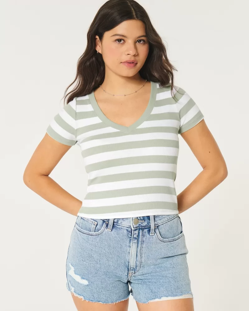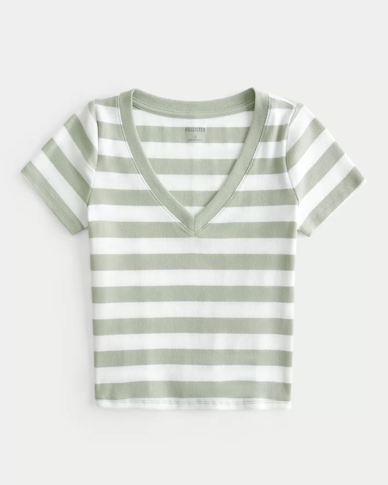 Undeniably comfy and super soft, this short-sleeve top features a v-neckline and short sleeves. Cozy ribbed fabric. Slim Fit.