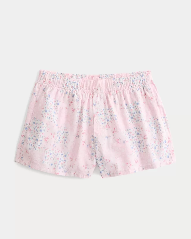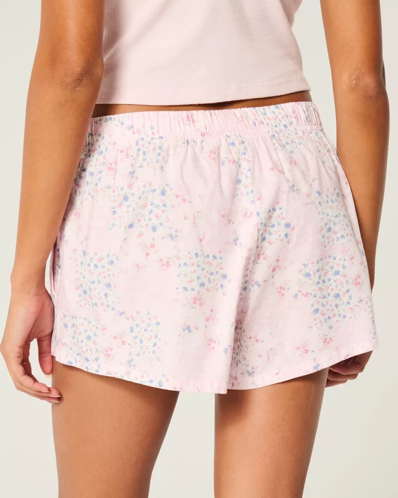 These cute and comfy boxer shorts are made with soft cotton fabric. Banded adjustable-rise waistband, pockets, buttons, all-over patchwork-style pattern. Imported.