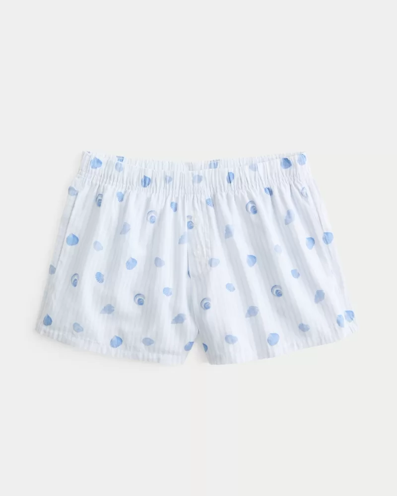 These cute and comfy boxer shorts are made with soft cotton fabric. Banded adjustable-rise waistband, pockets, buttons, all-over seashell pattern. Imported.