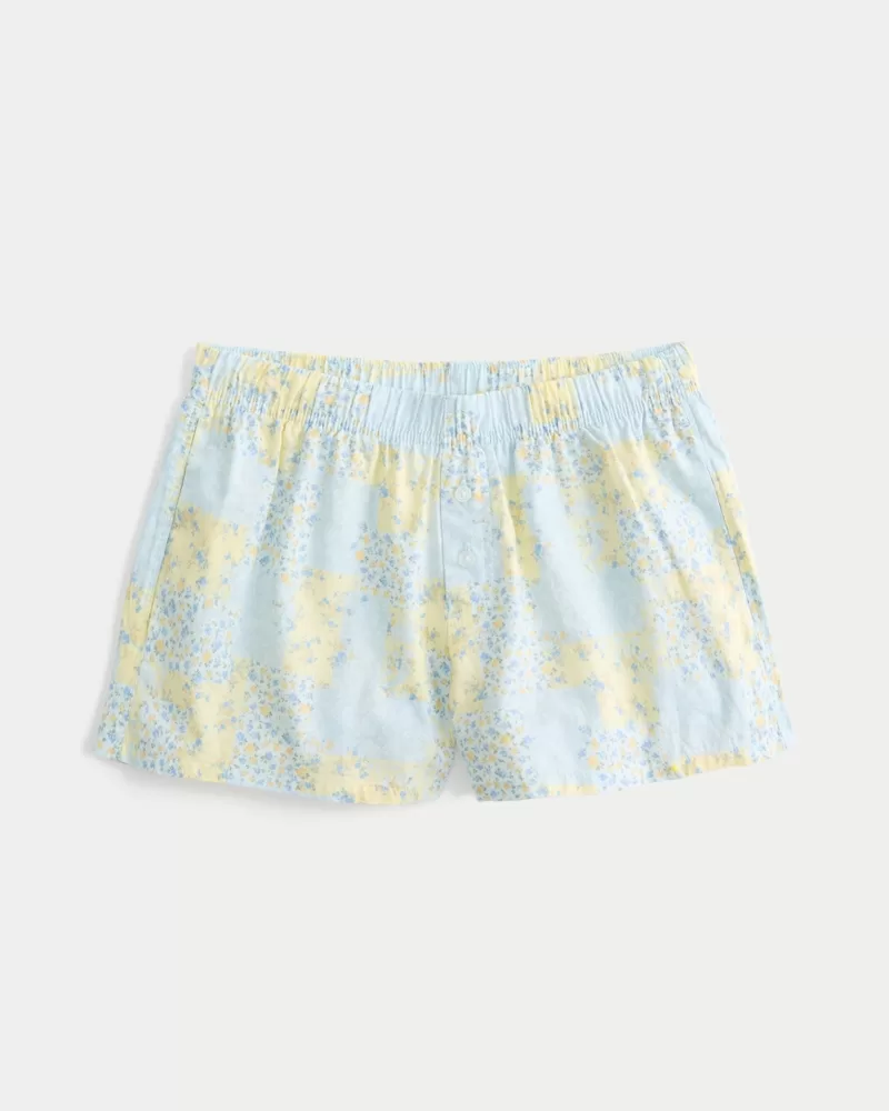 These cute and comfy boxer shorts are made with soft cotton fabric. Banded adjustable-rise waistband, pockets, buttons, scalloped lace trim. Imported.