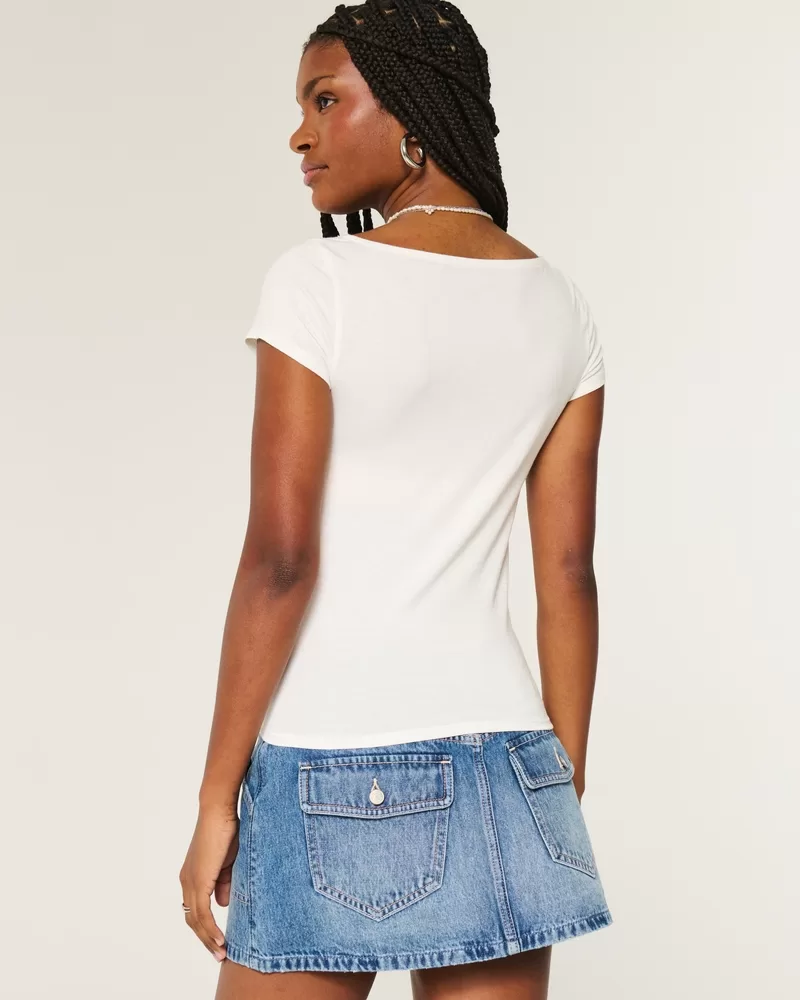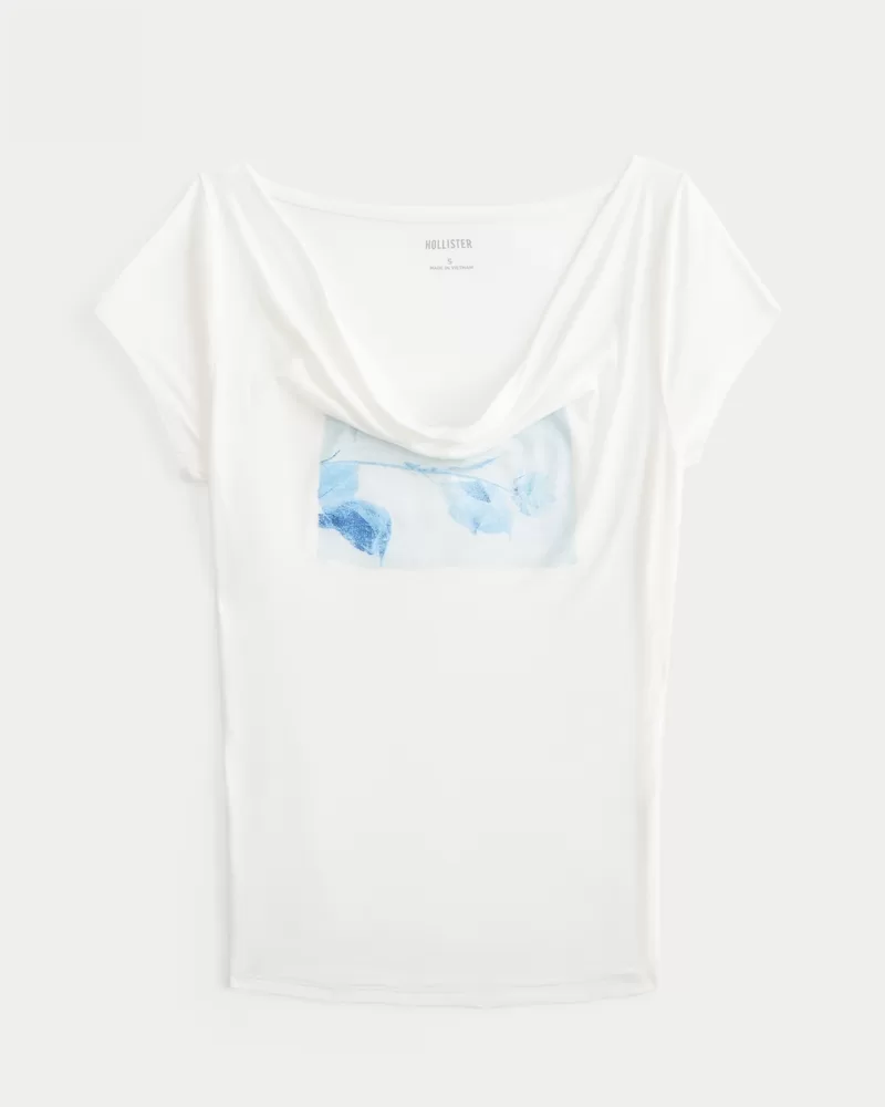 A super soft and comfy tee featuring a floral print graphic and cowl neckline. Short sleeves. Slim Fit. Imported.