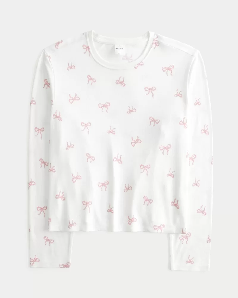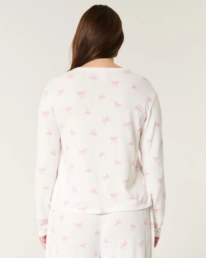 A super soft pajama shirt with a crew neckline and long sleeves. All-over bow pattern.