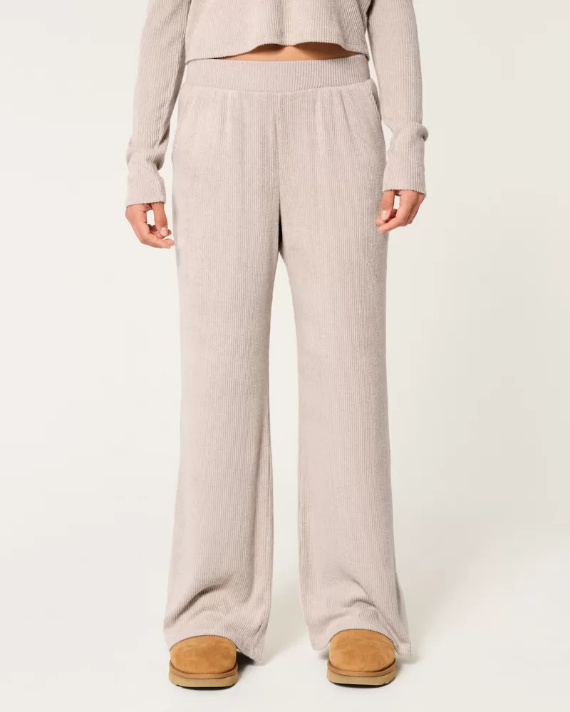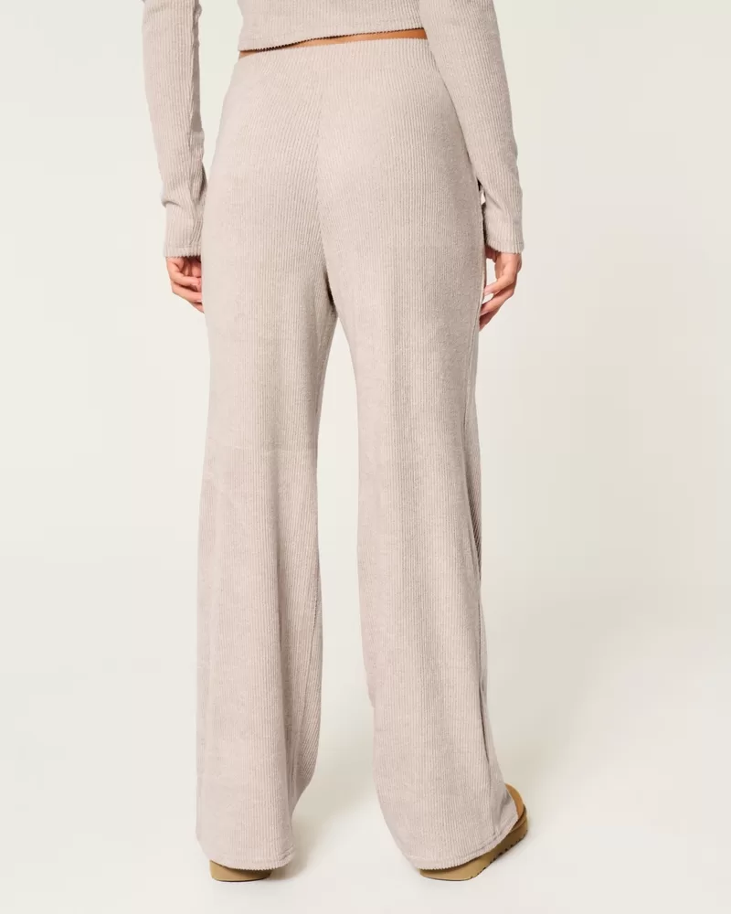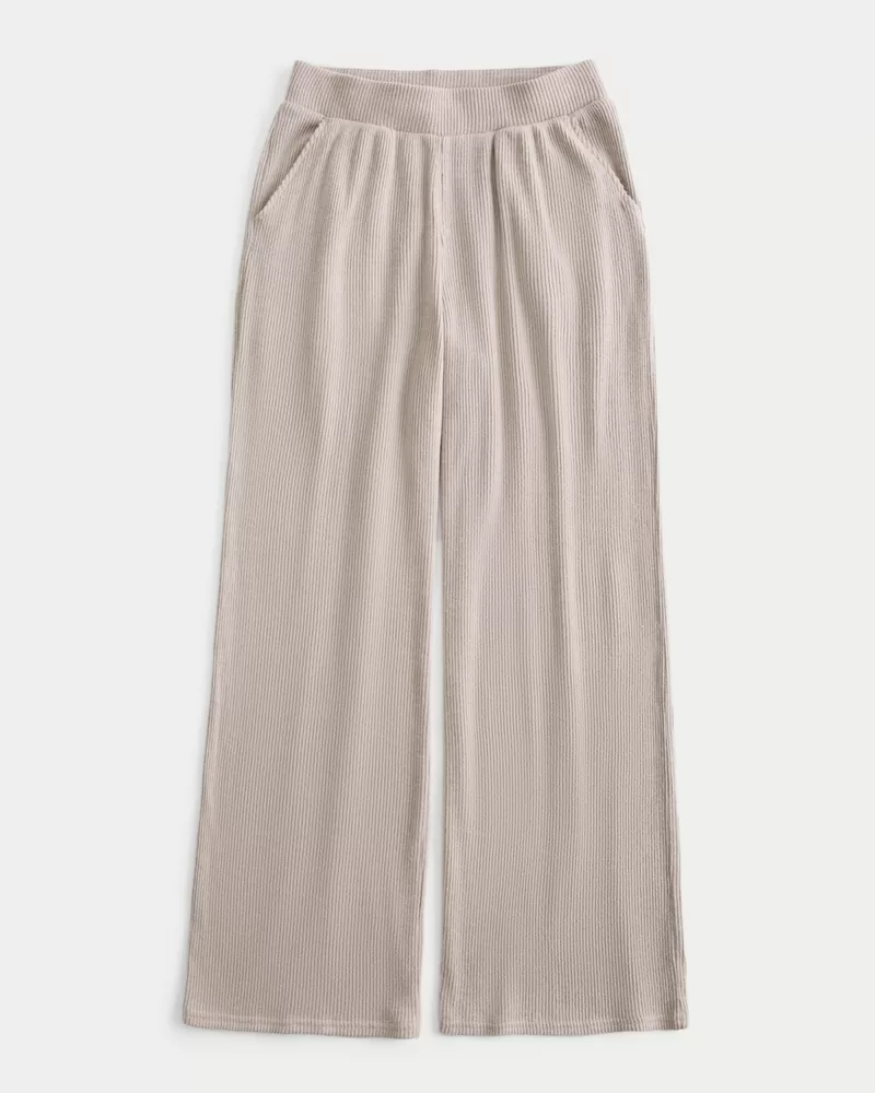 Super soft pants in cozy ribbed fabric, designed with a baggy leg. Pockets, banded waist. Imported.
