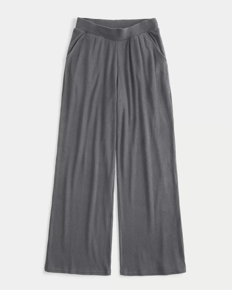 Super soft pants in cozy ribbed fabric, designed with a baggy leg. Pockets, banded waist. Imported.