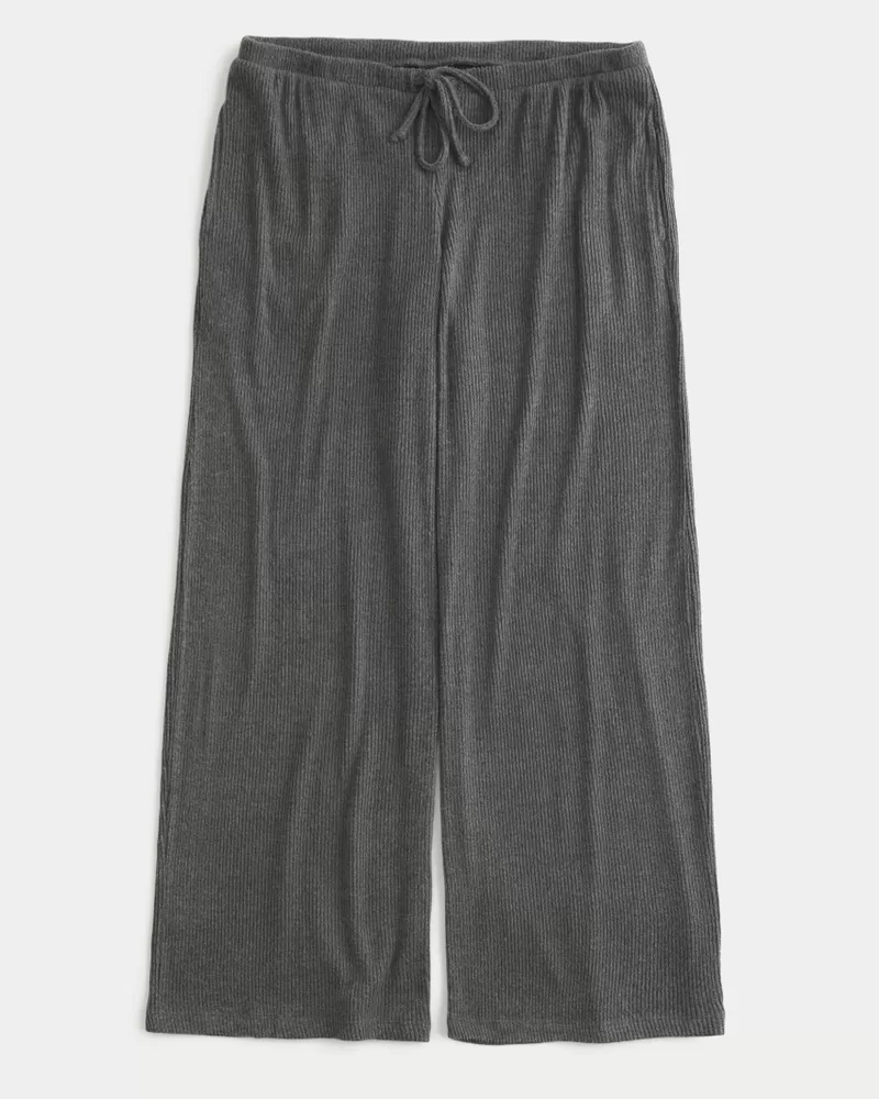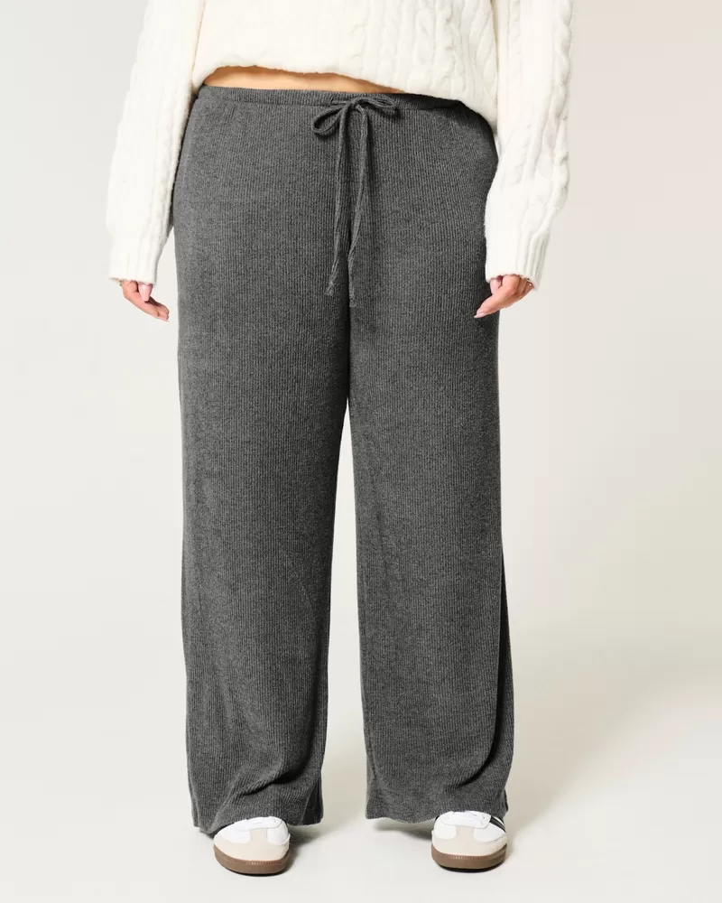 Super soft pants in cozy ribbed fabric, designed with a high-rise waist and baggy leg. Pockets, drawstring waist. Imported.