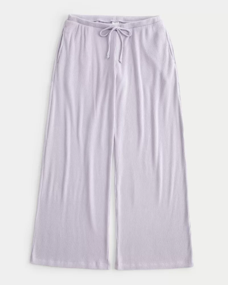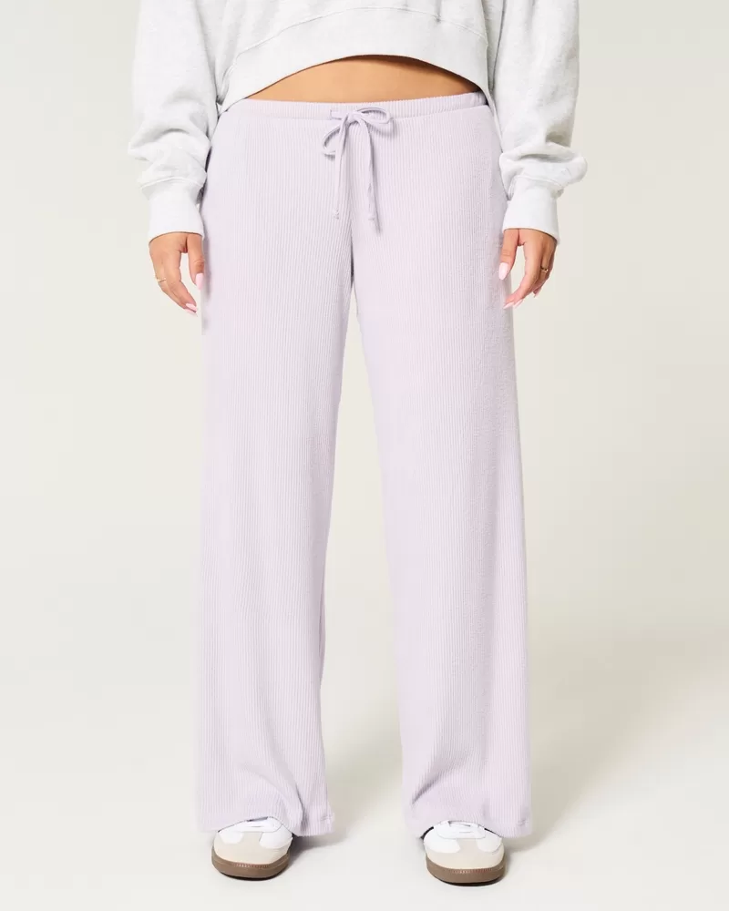 Super soft pants in cozy ribbed fabric, designed with a high-rise waist and baggy leg. Pockets, drawstring waist. Imported.