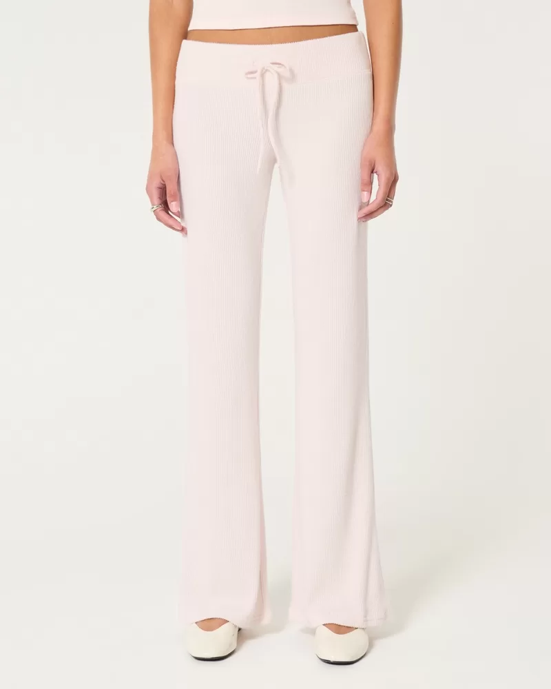 Super soft flare pants in cozy ribbed fabric, designed with a flared leg. Drawstring waist. Imported.
