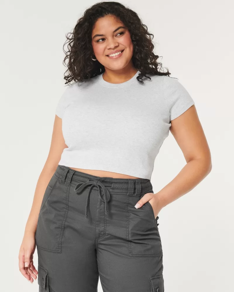 A super soft baby tee designed with a slightly shrunken silhouette. Crew neckline, short sleeves, micro-ribbed fabric. Slim Fit.
