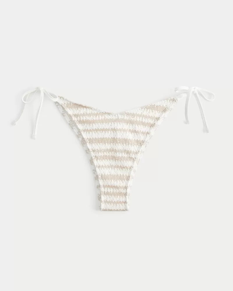 A cute bikini bottom designed with side ties, ruched back detailing and a v-waist. High-leg silhouette, soft crochet-style swim fabric. Imported.