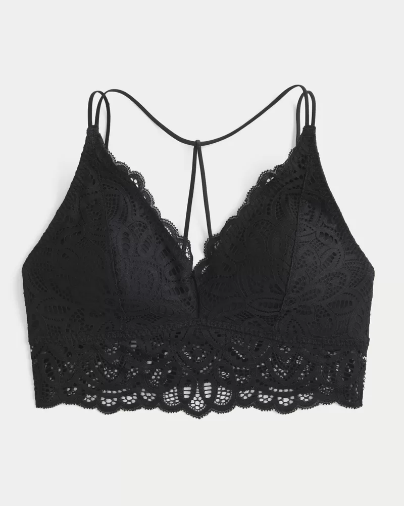 Cute and comfy, this bralette features all-over crochet-style lace detailing and a strappy back. Perfect for layering or wearing on its own! Imported.