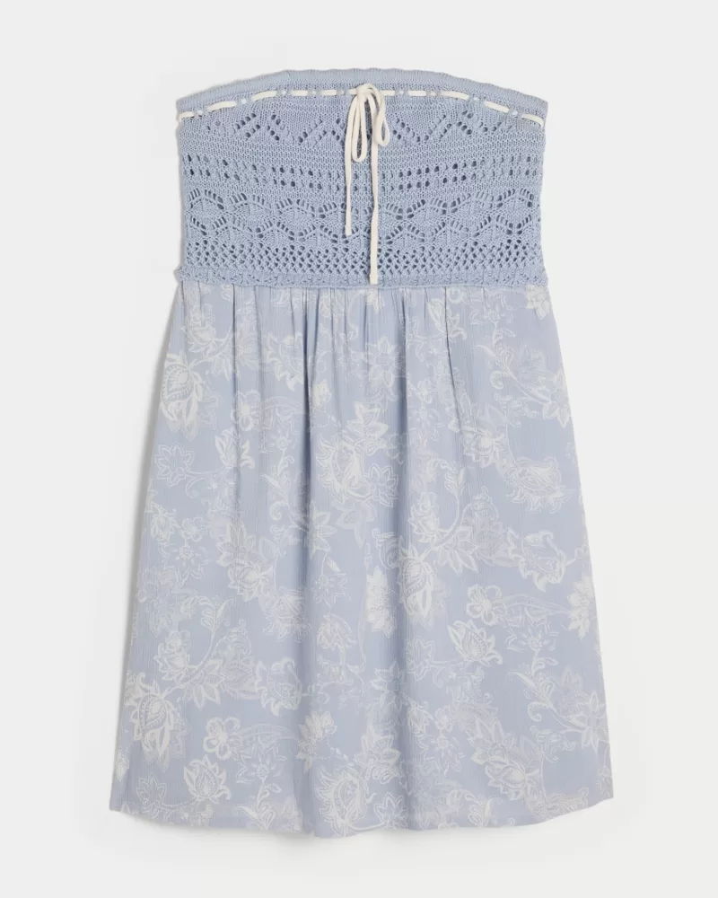 Crochet-Style Mix Strapless Mini Dress