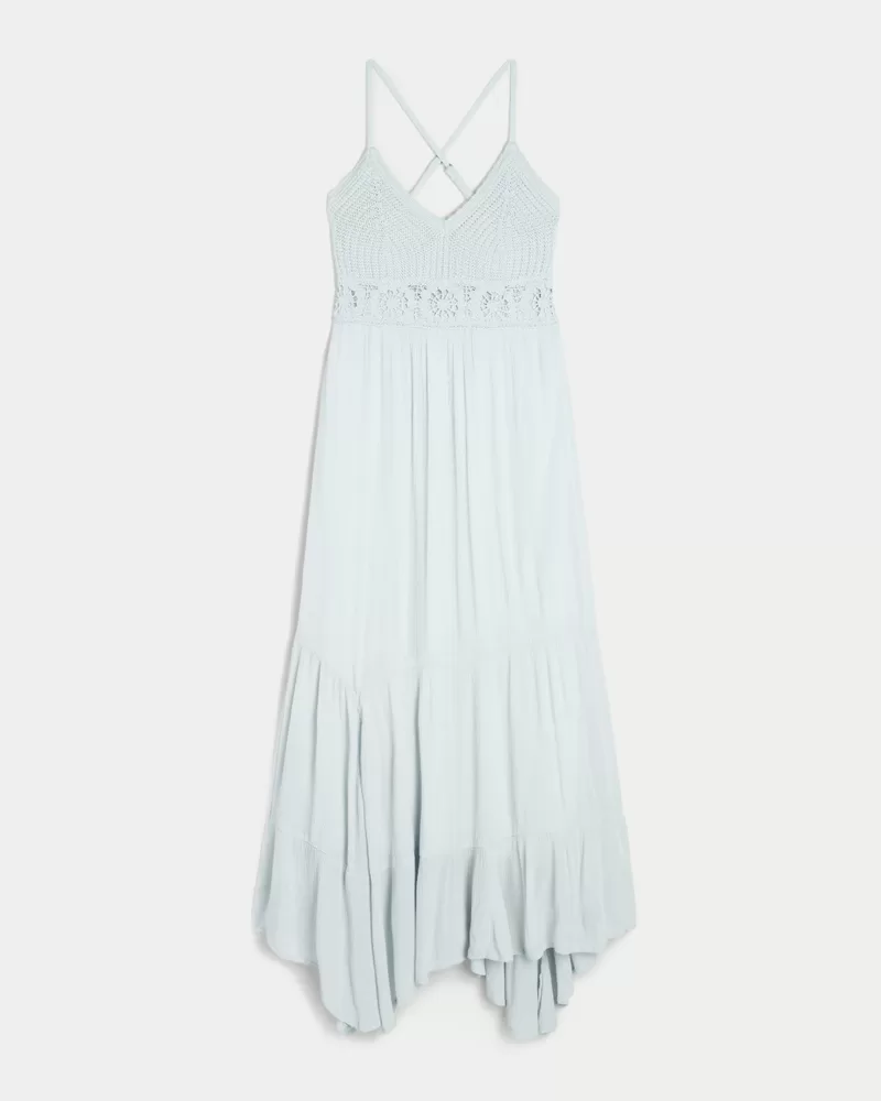 Crochet-Style Mix V-Neck Maxi Dress