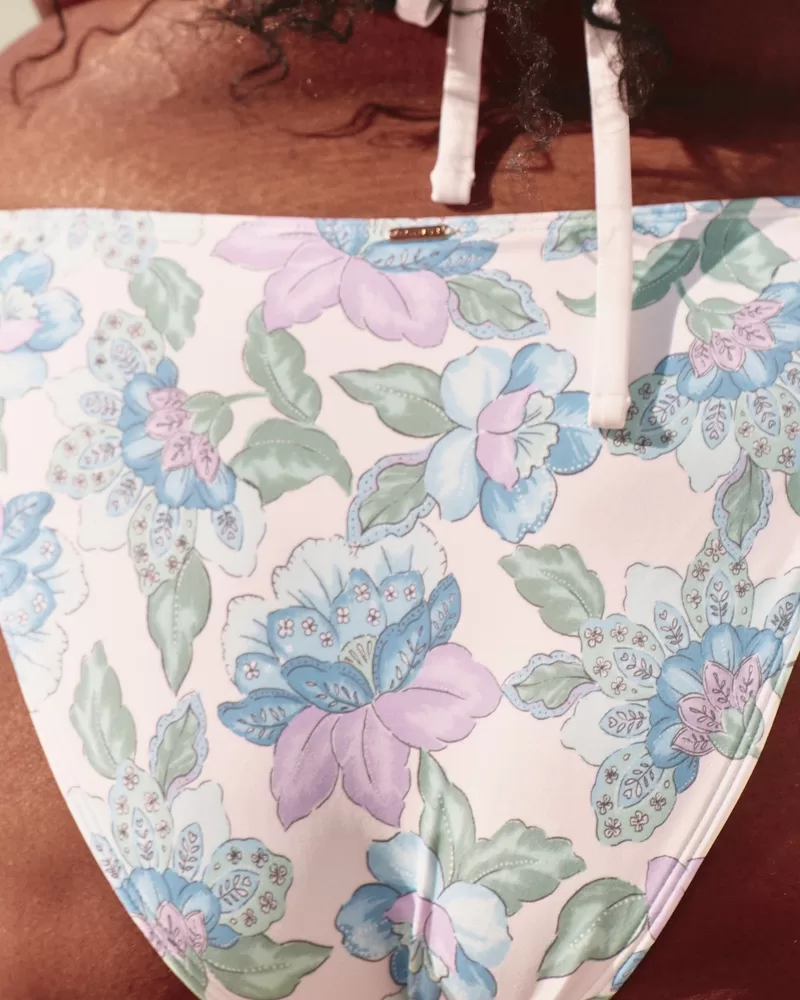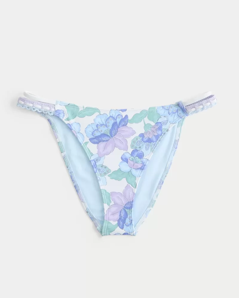 Your new fave bikini bottom is made with soft swim fabric and features double side straps with crochet-style details. Cheeky coverage, high-leg silhouette. Imported.