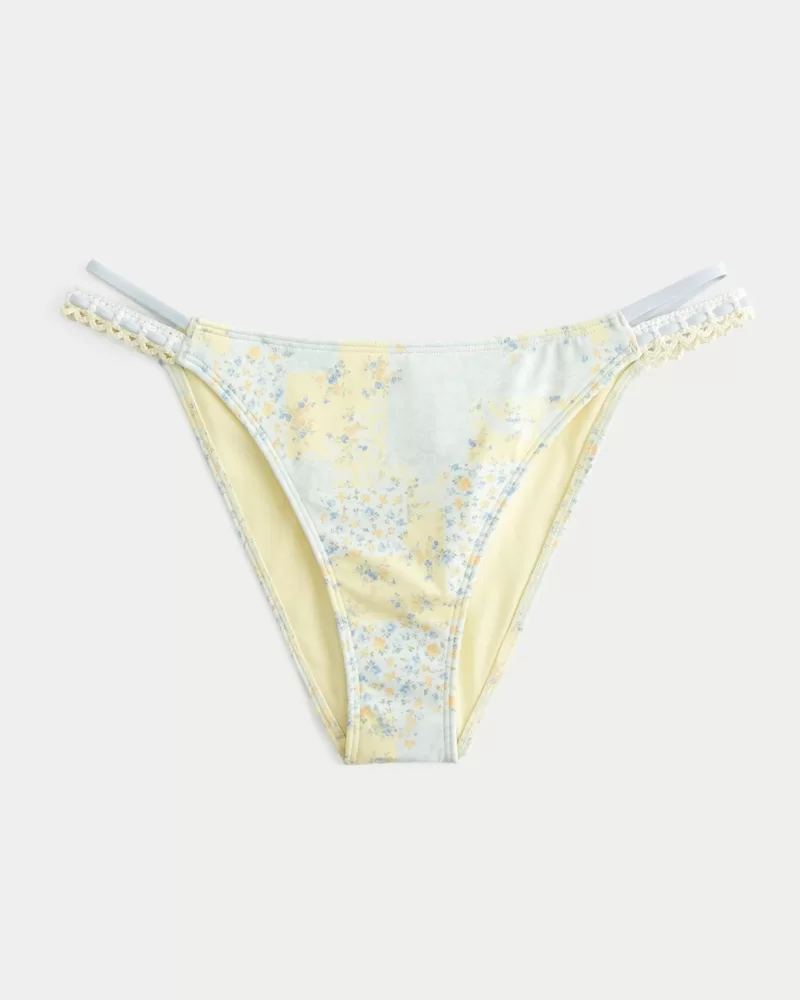 Your new fave bikini bottom is made with soft swim fabric and features double side straps with crochet-style details. Cheeky coverage, high-leg silhouette. Imported.