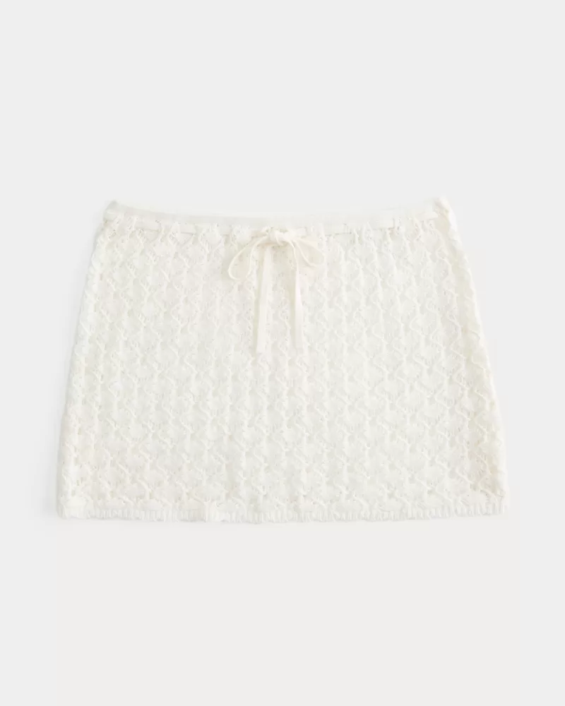 This cute and super soft swim cover up skirt is made with pretty crochet-style fabric. Pull-on drawstring waist. Imported.