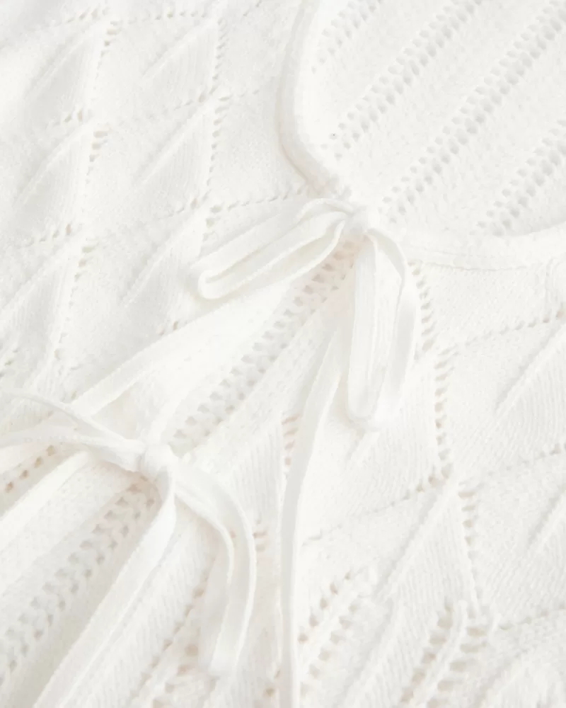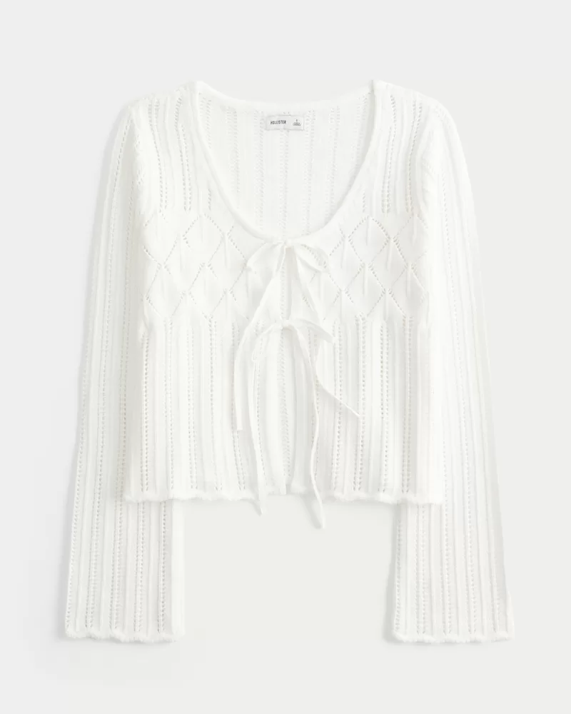 Crochet-Style Tie-Front Textured Sweater