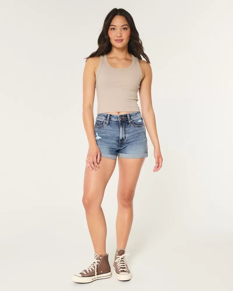 Curvy High-Rise Ripped Dark Wash Denim Shorts 3″,Curvy High-Rise Ripped Dark Wash Denim Shorts 3″