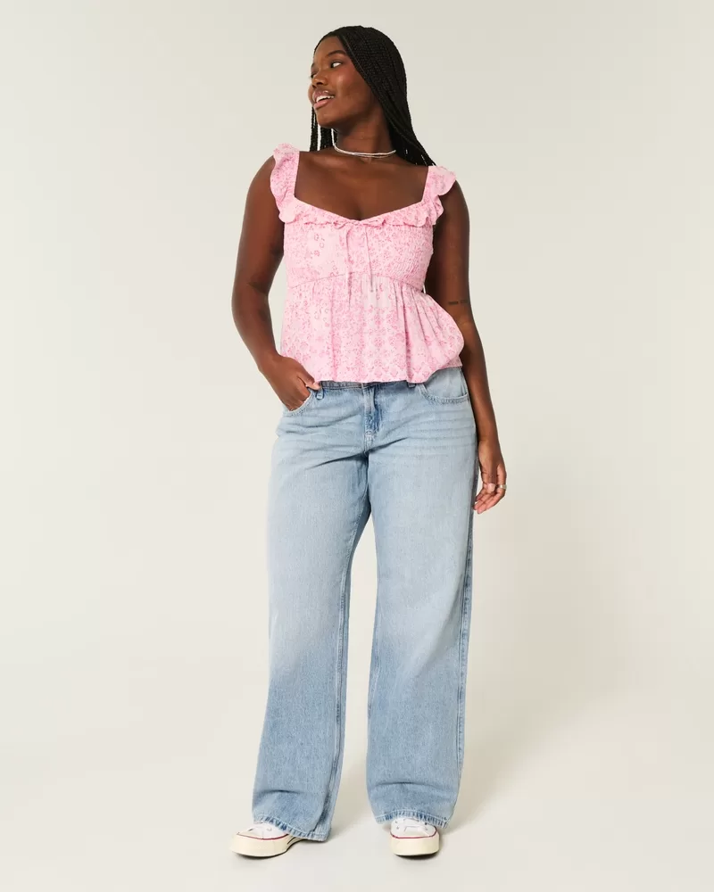 Curvy Low-Rise Light Wash Baggy Jeans