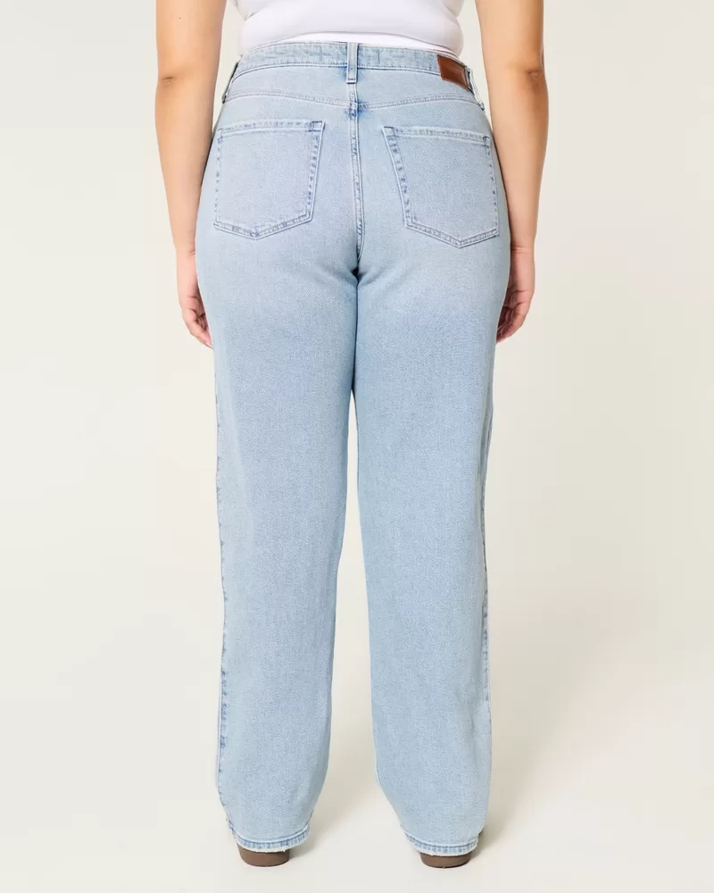 Curvy Ultra High-Rise Ripped Light Wash Dad Jeans