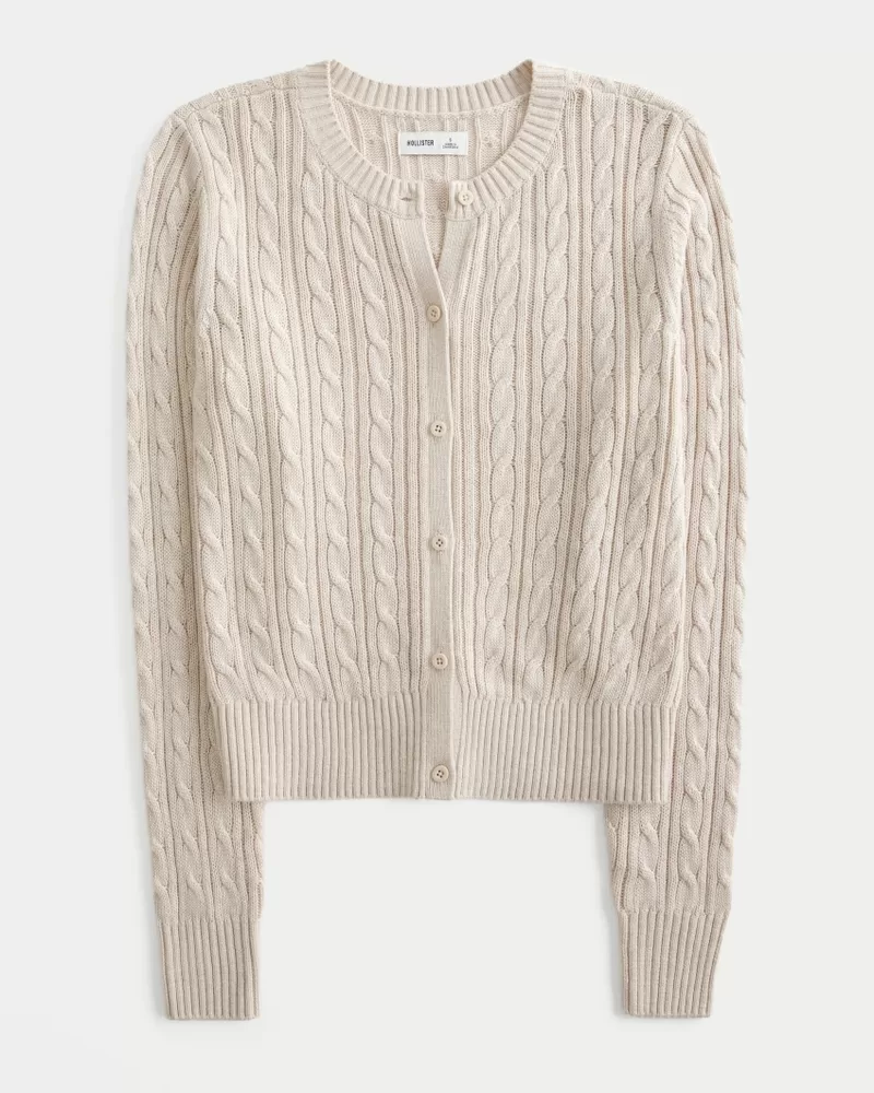 Easy Cable-Knit Crew Cardigan