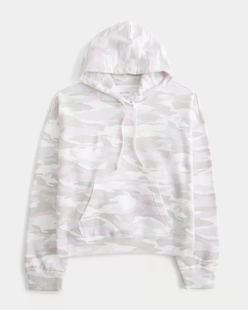 A super soft fleece hoodie featuring an all-over camo pattern, soft drawstring hood and front pouch pocket. Long sleeves. Easy Fit. Imported.