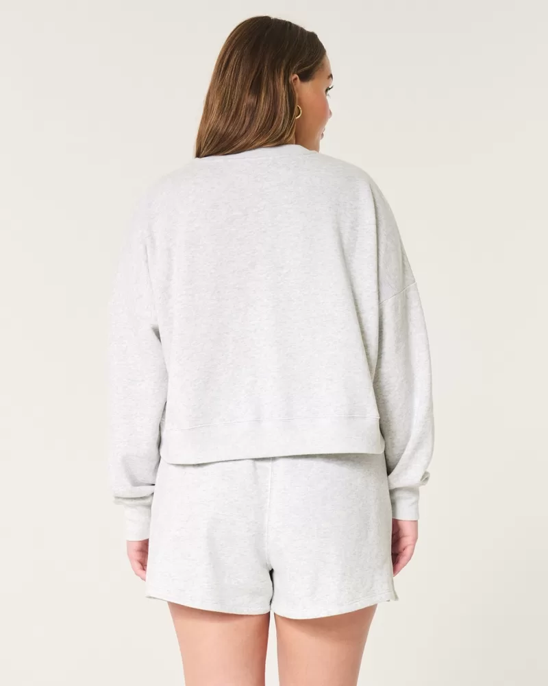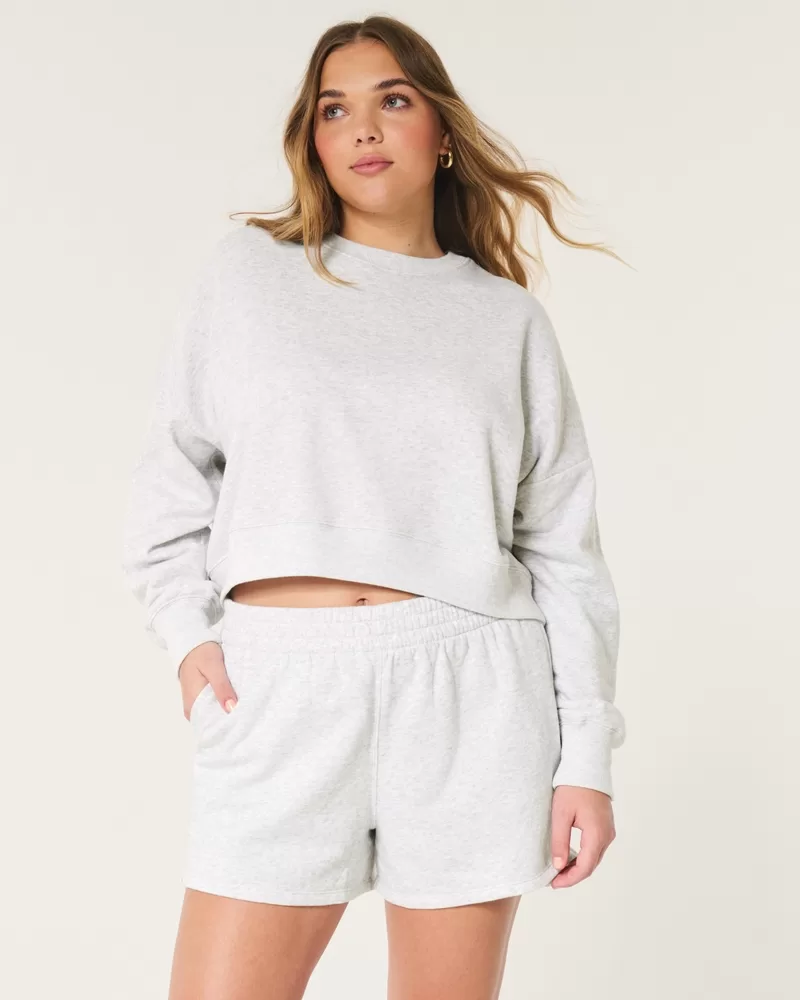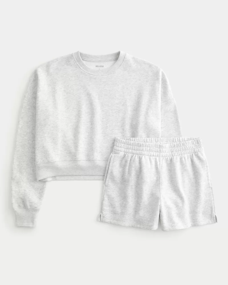Includes a super soft fleece sweatshirt and fleece shorts designed with a banded ultra high-rise waist. Easy Fit sweatshirt. Imported.
