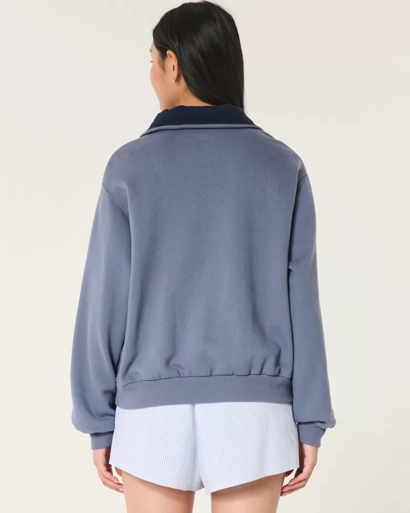 A super soft fleece sweatshirt Denver USA graphic embroidery at the right chest and athletic-inspired print graphics at the left chest. Mock-neck collar with half-zip placket, long sleeves. Easy Fit. Imported.