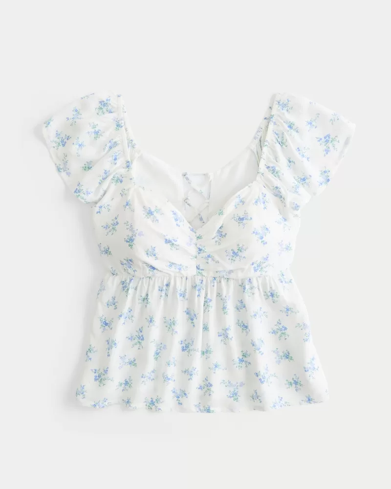 Your new fave top is designed with a babydoll silhouette, flutter sleeves and a lace-up open back. Built-in bust pad details, flowy hem. Easy Fit.