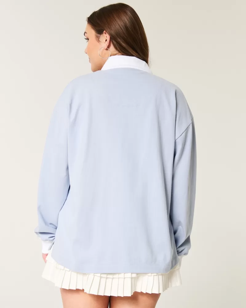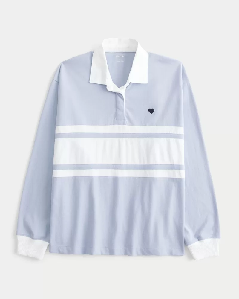 A super soft 100% cotton rugby polo with long sleeves and an embroidered heart detail at the left chest. Collar, button placket. Easy Fit. Imported.