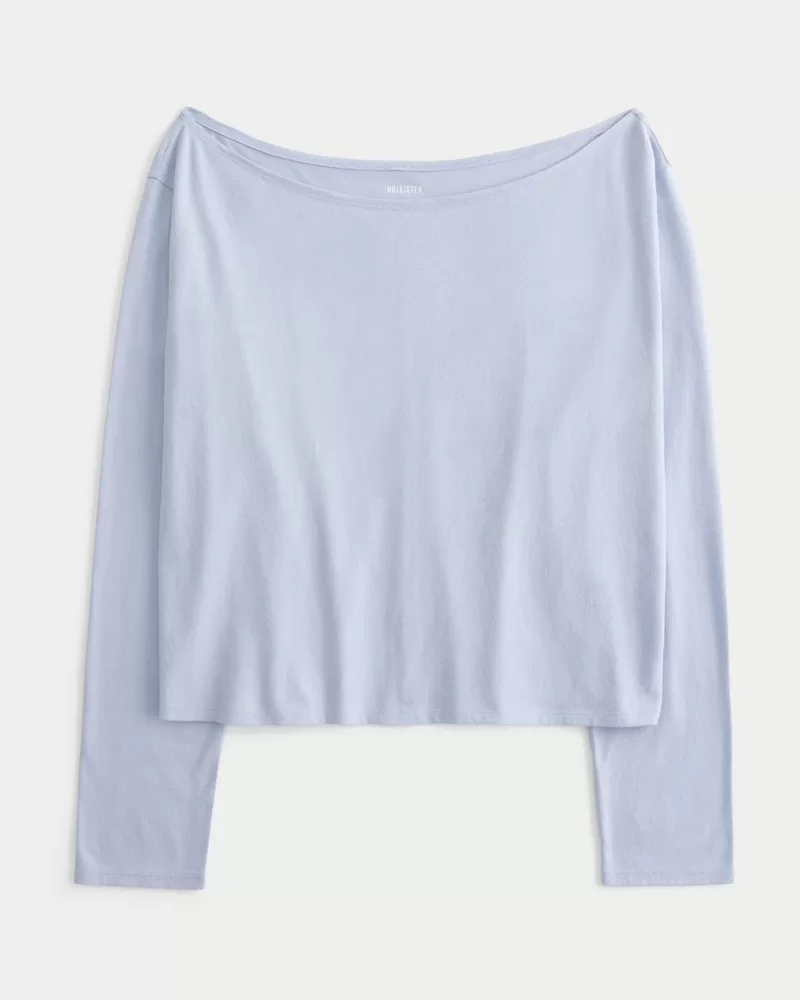 A super soft top in 100% cotton fabric, designed with an off-the-shoulder neckline and long sleeves. Easy Fit. Imported.
