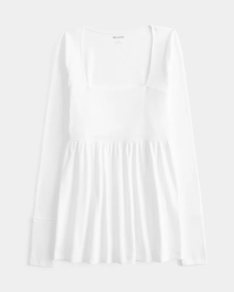 A super soft and cozy long-sleeve babydoll top featuring a square neckline, flowy skirt and long sleeves. Easy Fit.
