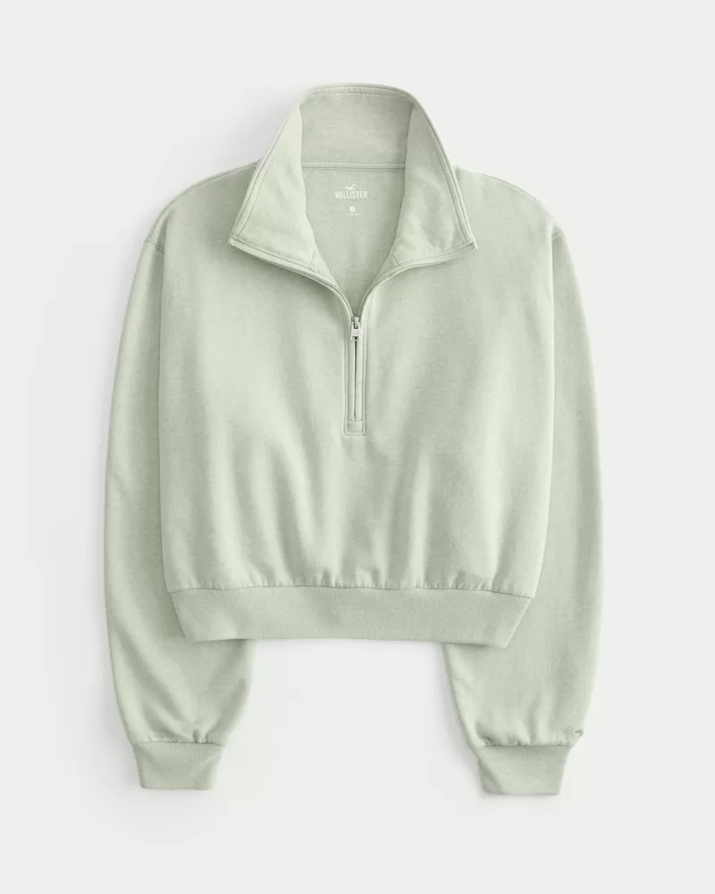 This super soft fleece mini sweatshirt features a mock-neck collar with half-zip closure. Long sleeves. Easy Fit. Imported.