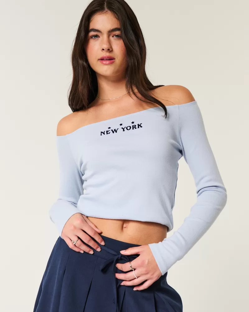 Easy New York Graphic Off-the-Shoulder Top
