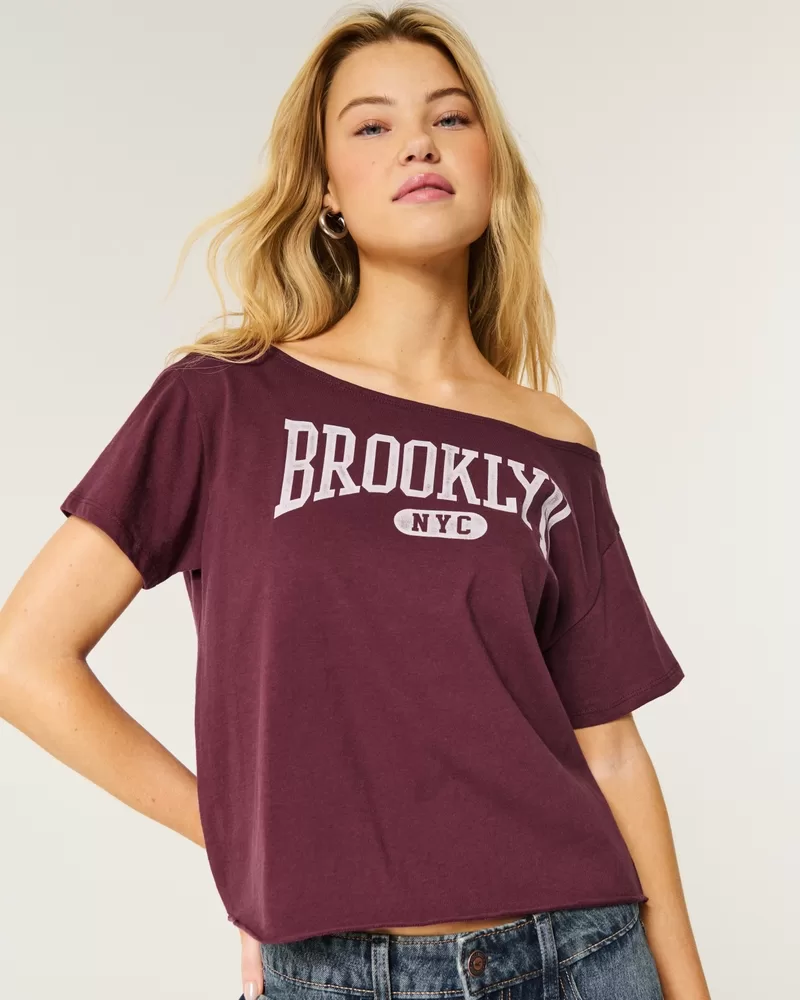 Easy Off-the-Shoulder Brooklyn Graphic Tee