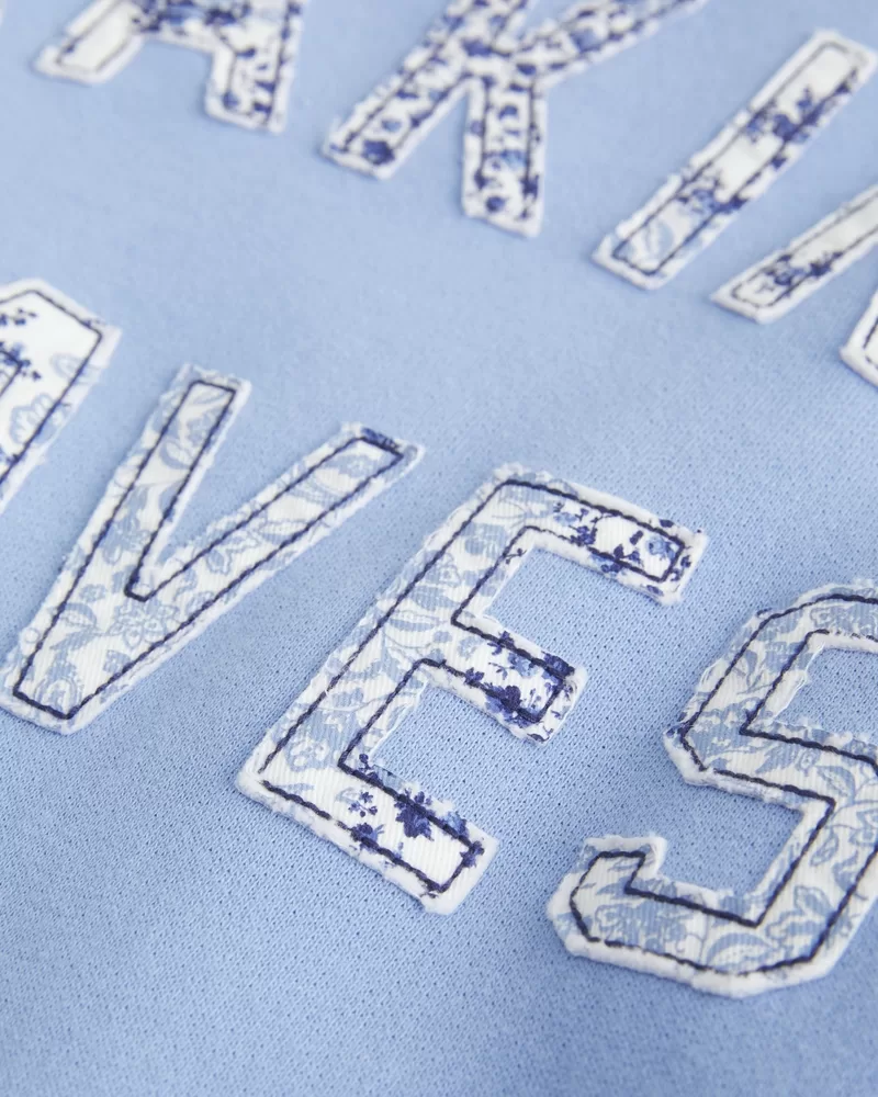 A super soft fleece sweatshirt featuring Making Waves graphic applique and an off-the-shoulder neckline. Long sleeves. Easy Fit. Imported.