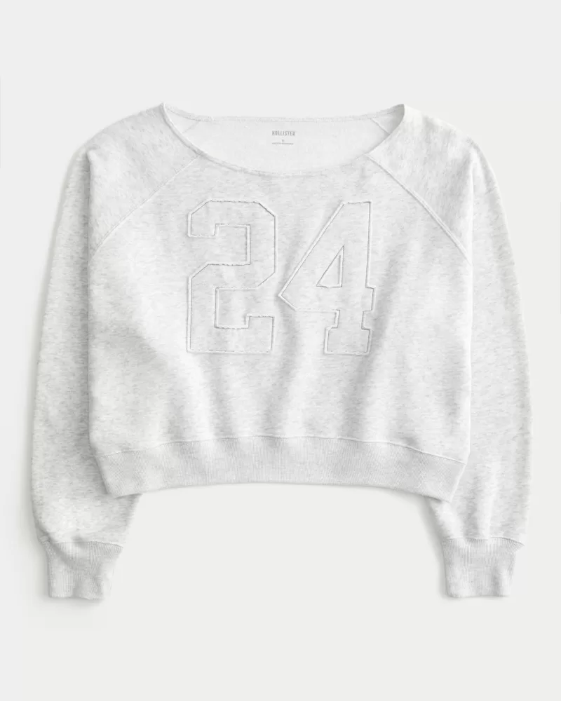A super soft fleece sweatshirt with varsity-inspired number applique and an off-the-shoulder neckline. Long sleeves. Easy Fit. Imported.