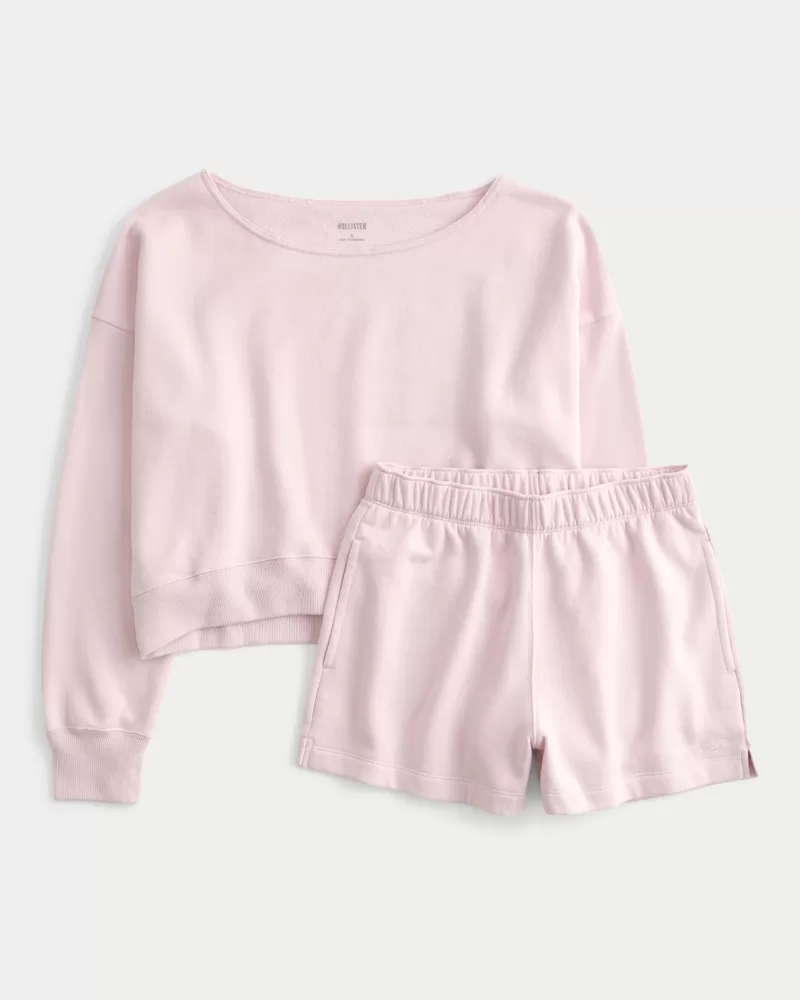 Easy Off-the-Shoulder Sweatshirt & Fleece Shorts Set