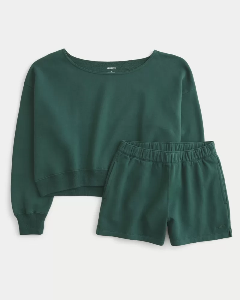 Easy Off-the-Shoulder Sweatshirt & Fleece Shorts Set,Easy Off-the-Shoulder Sweatshirt & Fleece Shorts Set