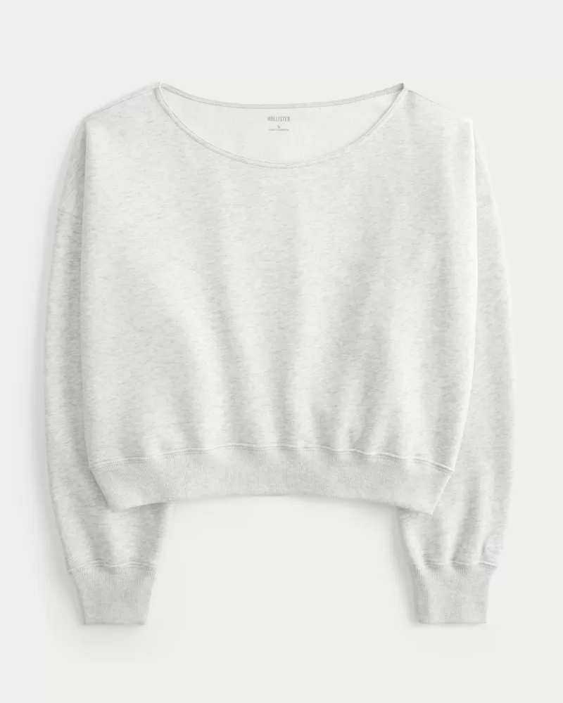 A cozy and super soft fleece sweatshirt with an off-the-shoulder neckline. Long sleeves. Easy Fit.