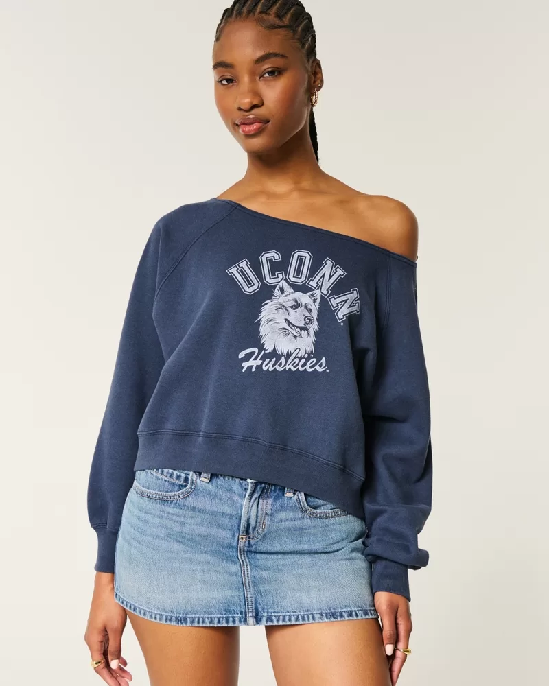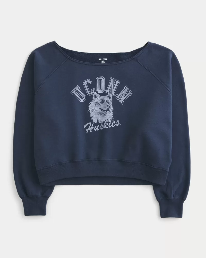 Easy Off-the-Shoulder UConn Huskies Graphic Sweatshirt