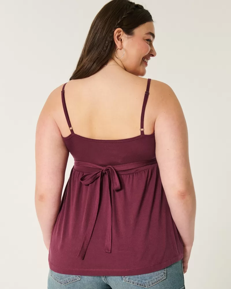 This cute babydoll top features a scoop neckline, henley placket with a woven pintucked detail and buttons. Adjustable straps, flowy hem. Easy Fit. Imported.