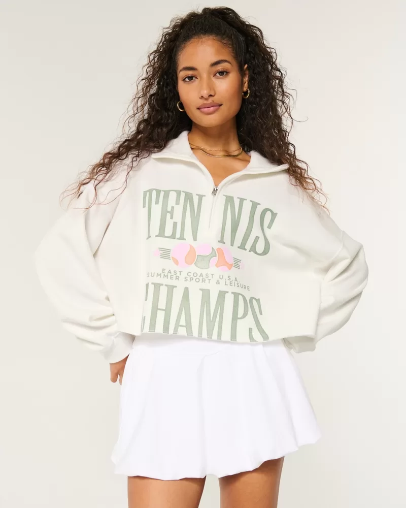 Easy Tennis Graphic Half-Zip Cutoff Sweatshirt
