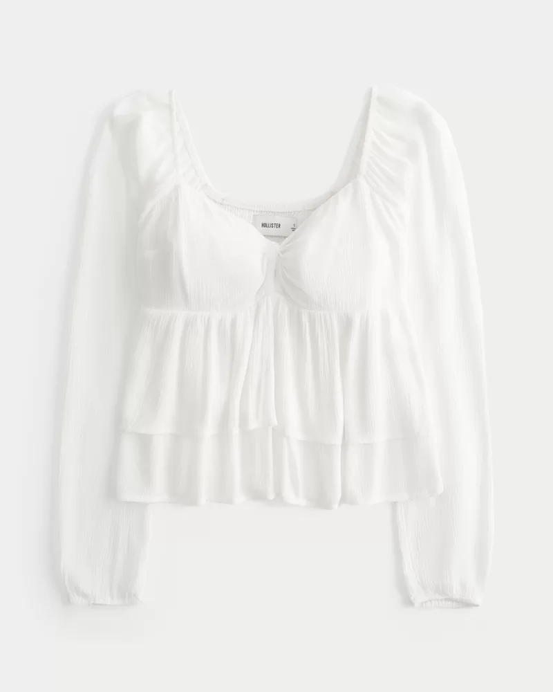 Your new fave top is designed with long sleeves, a babydoll silhouette and twist detail at the bust. Double tiered hem, smocked back. Easy Fit. Imported.