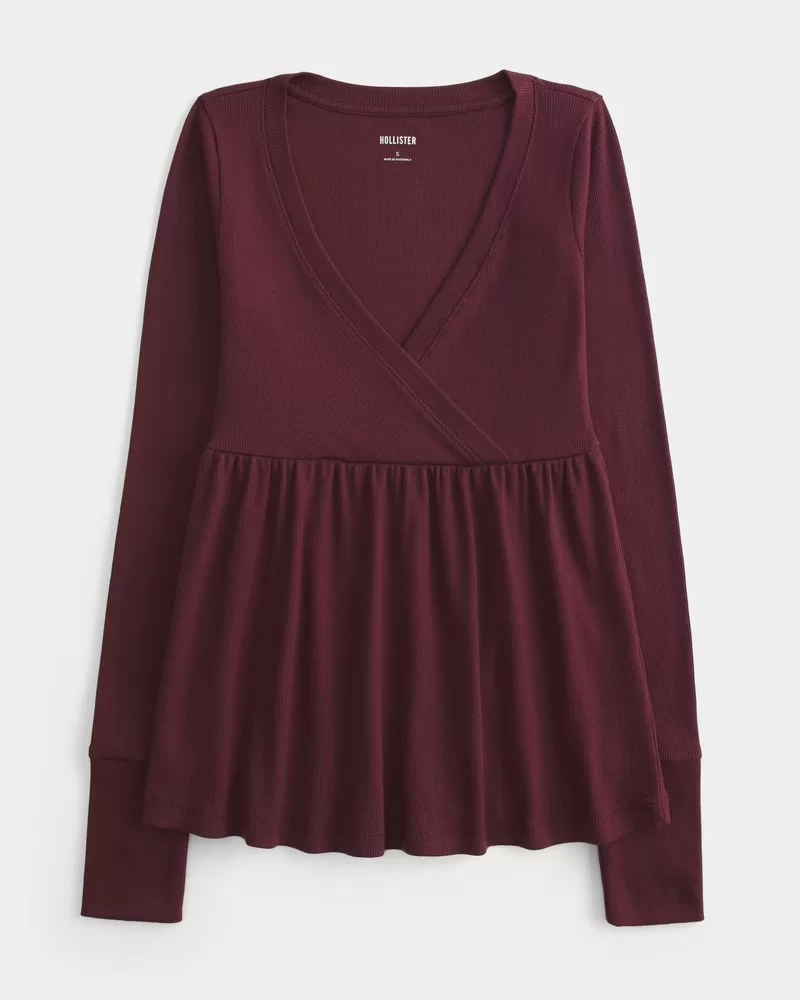 A cute and super soft top designed with a babydoll silhouette and wrap-style v-neckline. Flowy hem, long sleeves. Easy Fit. Imported.